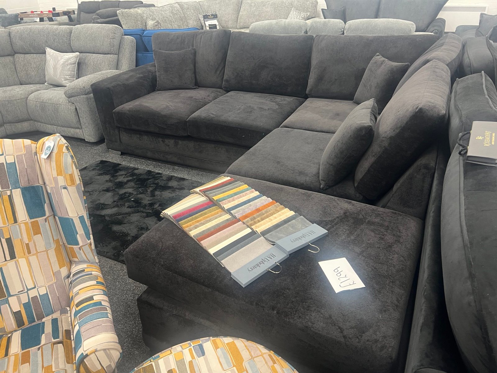 This Stunning Sofa is part of our SOFAS BY YOU Range this sofa can be customised with different fabrics & can also be made to size this sofa comes as standard size 260cm by 240cm delivered within 3-4 weeks if you would like to view this stunning sofa & see our different fabric options please visit our Showroom at – 75 Barrie Road G52-4PX , Hillington